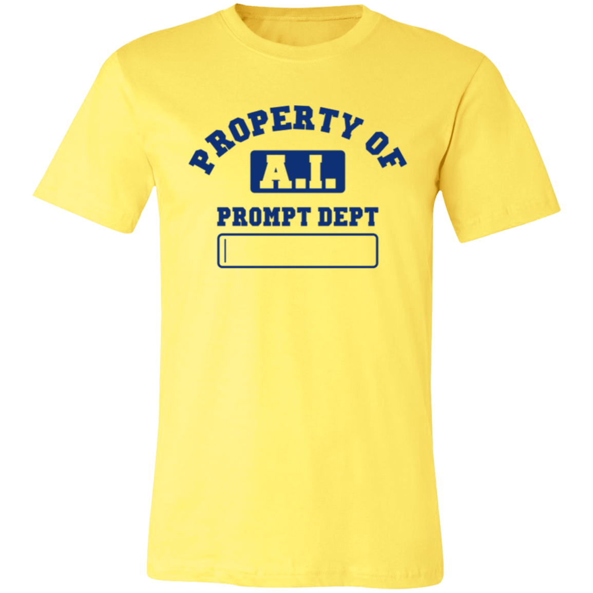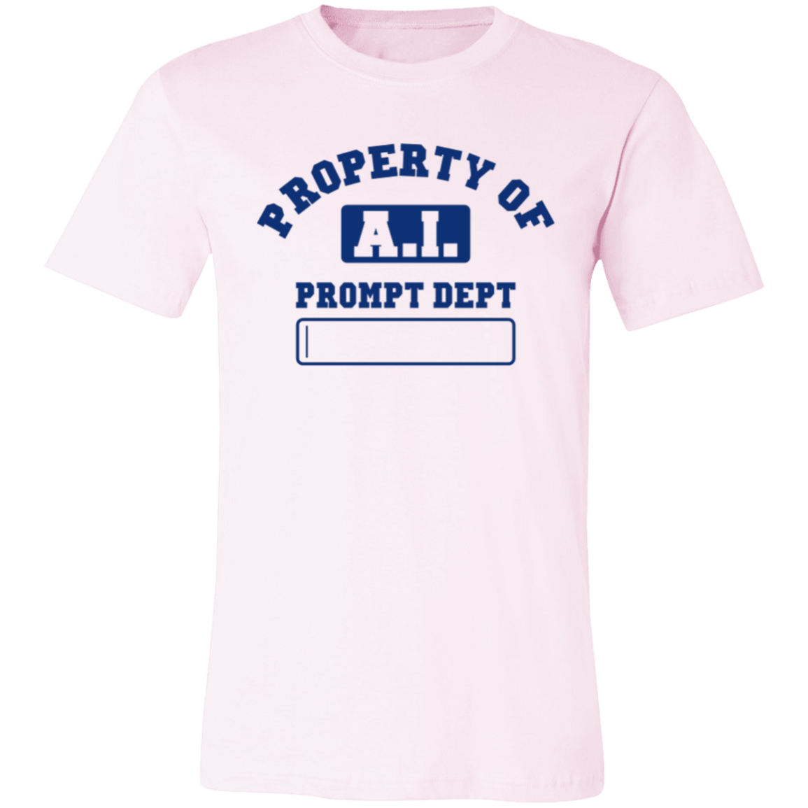 Introducing our “Property of AI – Prompt Dept” P.E. style t-shirt – the perfect way to show off your love for AI and its incredible capabilities. Featuring bold block letters in blue ink on a light-colored shirt, this design showcases your allegiance to the world of AI prompts.